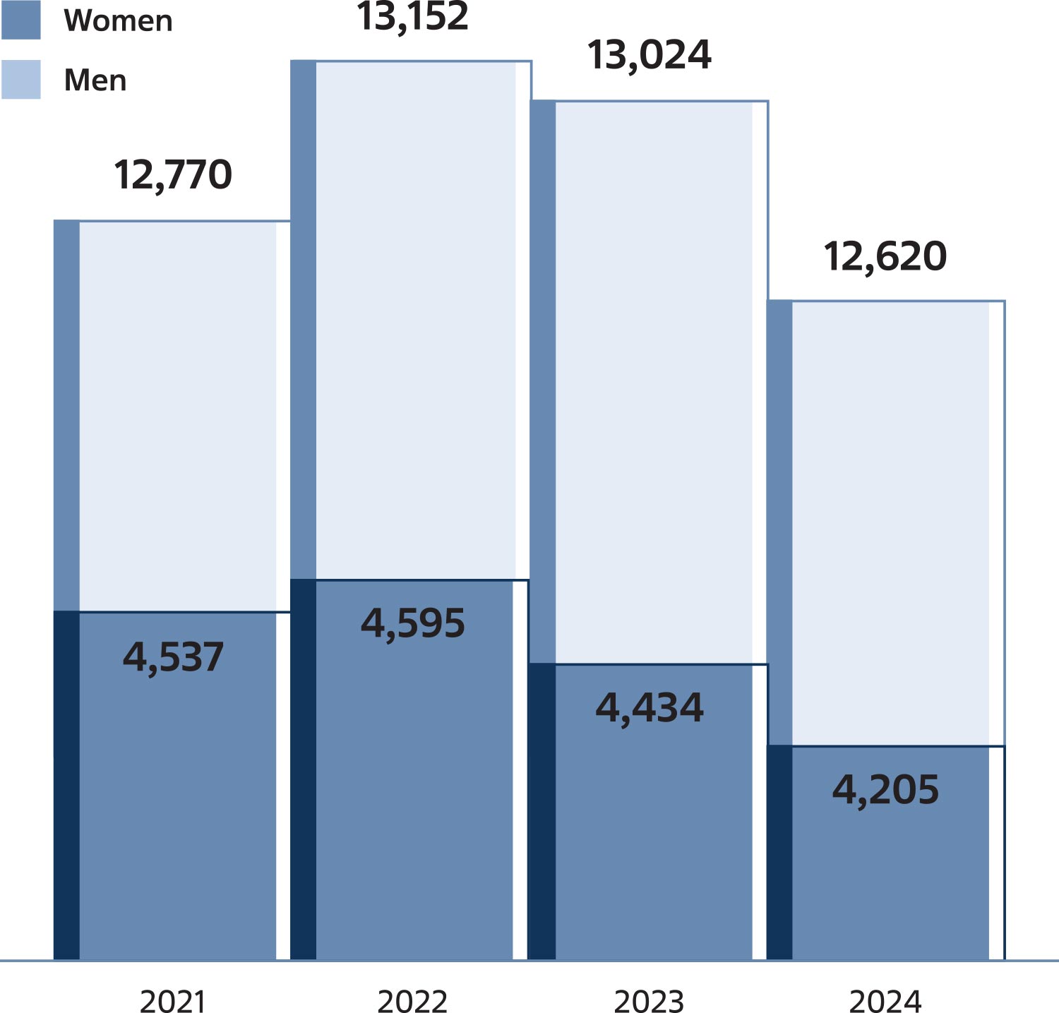 In 2024, the Company hired 987 people, of whom 785 were men and 202 were women.