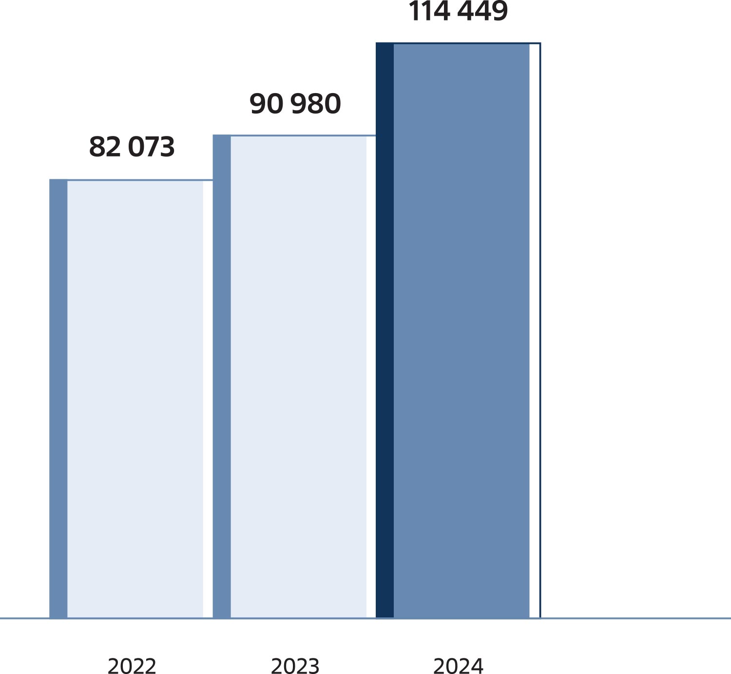 В 2024 году наблюдался значительный рост косвенных выбросов (связанных с электроэнергией) до 114 289 т CO₂-экв, что на 26% превышает показатель 2023 года (90 591 т CO₂-экв). Увеличение выбросов, обусловлено возросшим потреблением электроэнергии, необходимого для развития сети и модернизации инфраструктуры.