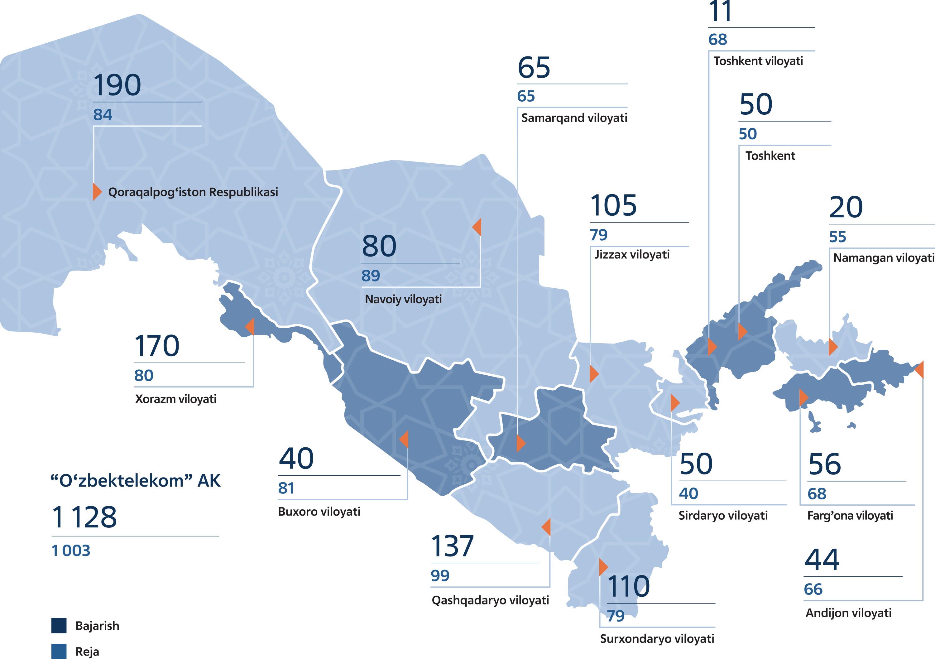 • Tabiiy gaz iste’moli 13,4 % ga oshdi (1 624 ming m³ dan 1 842 ming m³ gacha).